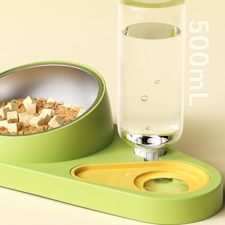寵物自動飲水雙碗貓狗食盆不鏽鋼斜口一體碗