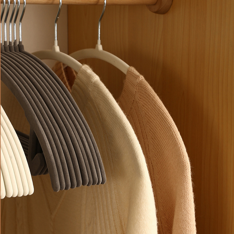 塑膠衣架植絨防滑無痕衣撐天鵝絨晾衣架