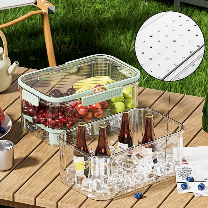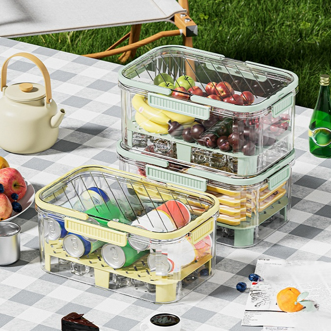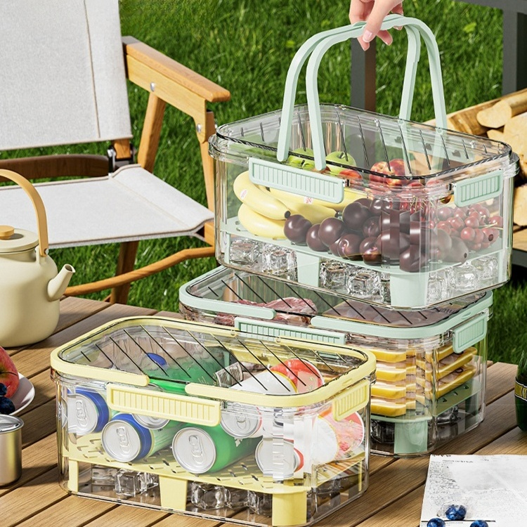 手提便攜大容量保鮮盒 冰箱塑膠便當盒 戶外野餐收納籃